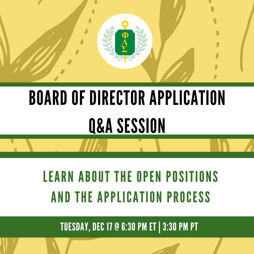 Interested in serving on next year's Board of Directors? Join current Members-at-Large Janie Cole and Christina Kim, President Caroline Ko, and Parliamentarian Jamie Wagner for an informational session about the …