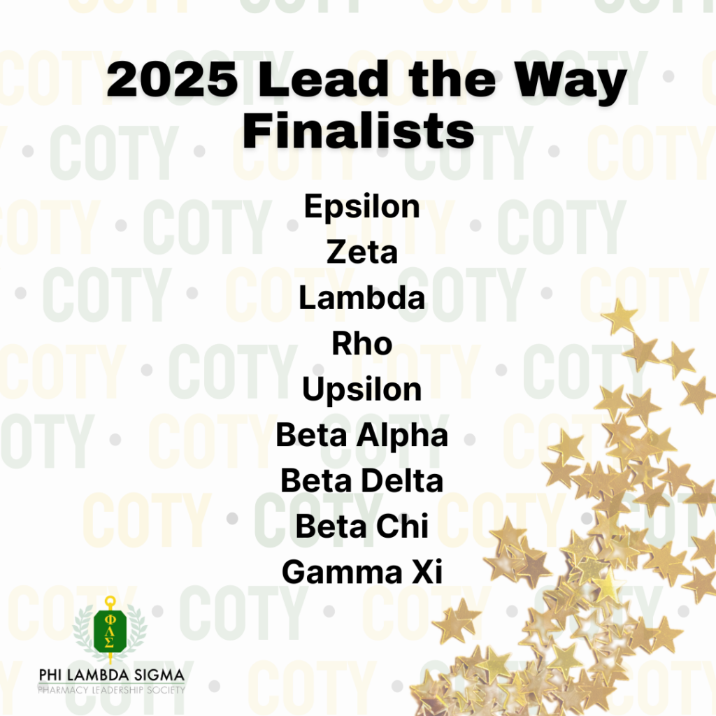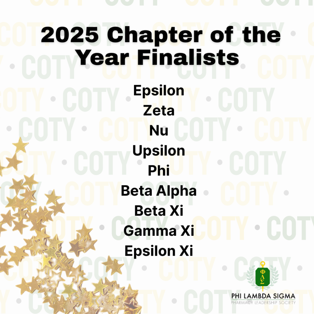 Join us in celebrating each of the 2025 Chapter of the Year Finalists for their hard work! The purpose of this award is to recognize an outstanding PLS chapter based on their contributions to the Society and pharmacy leadership.